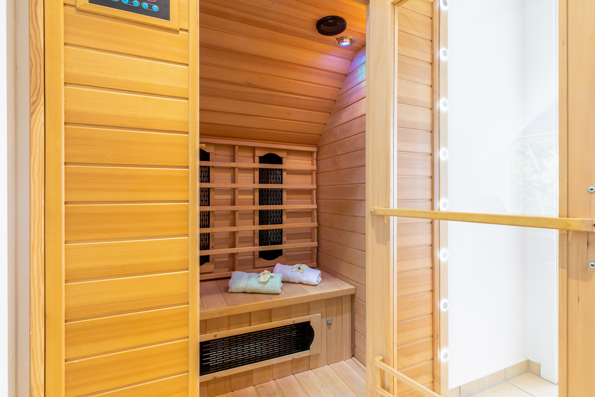 - Eingebaute Infrarotsauna zum Tief-Durchatmen und Entspannen